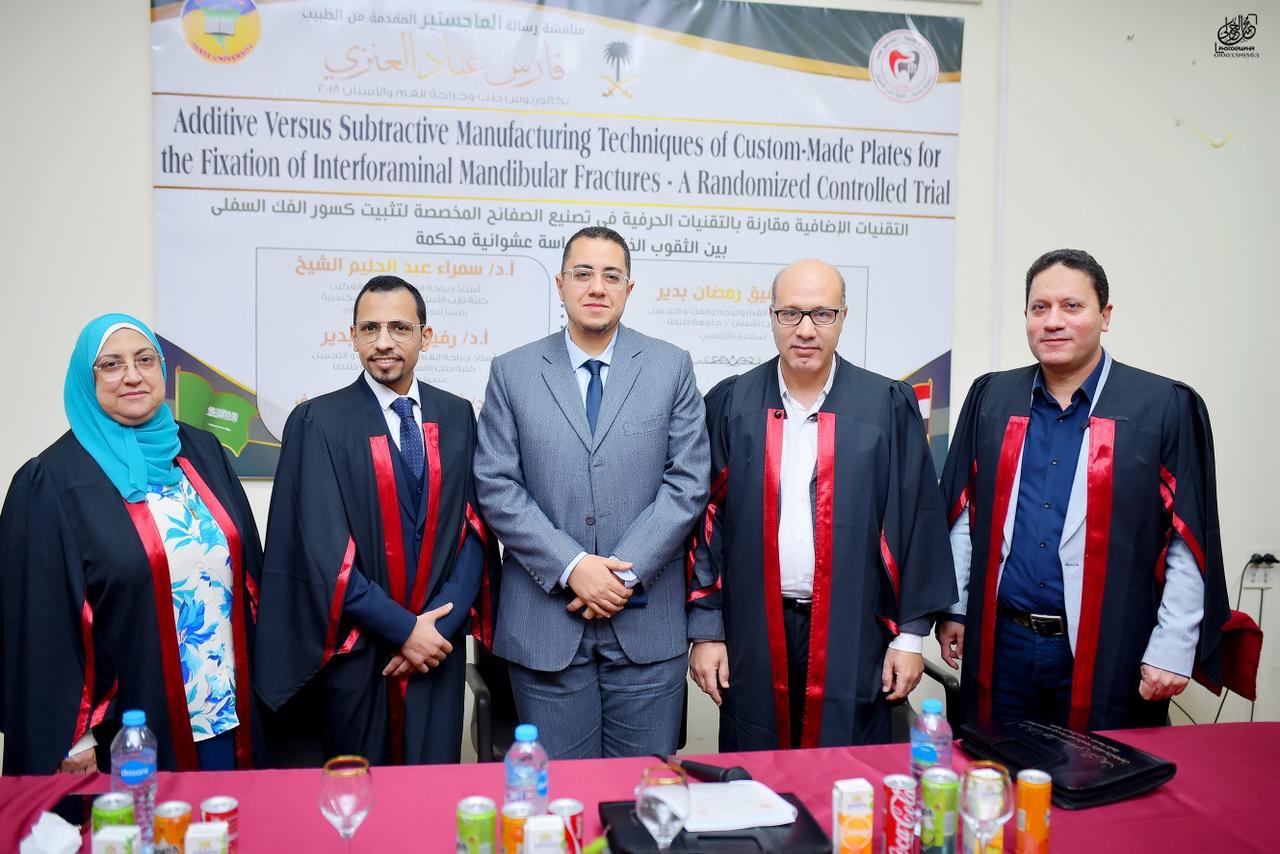 La Faculté de médecine dentaire de l'Université de Tanta a organisé la soutenance publique de la thèse de magistrat du Dr/ Fares Anad Al-Anzi, le dimanche 15 février 2026, dans l'amphithéâtre du sixième étage.
