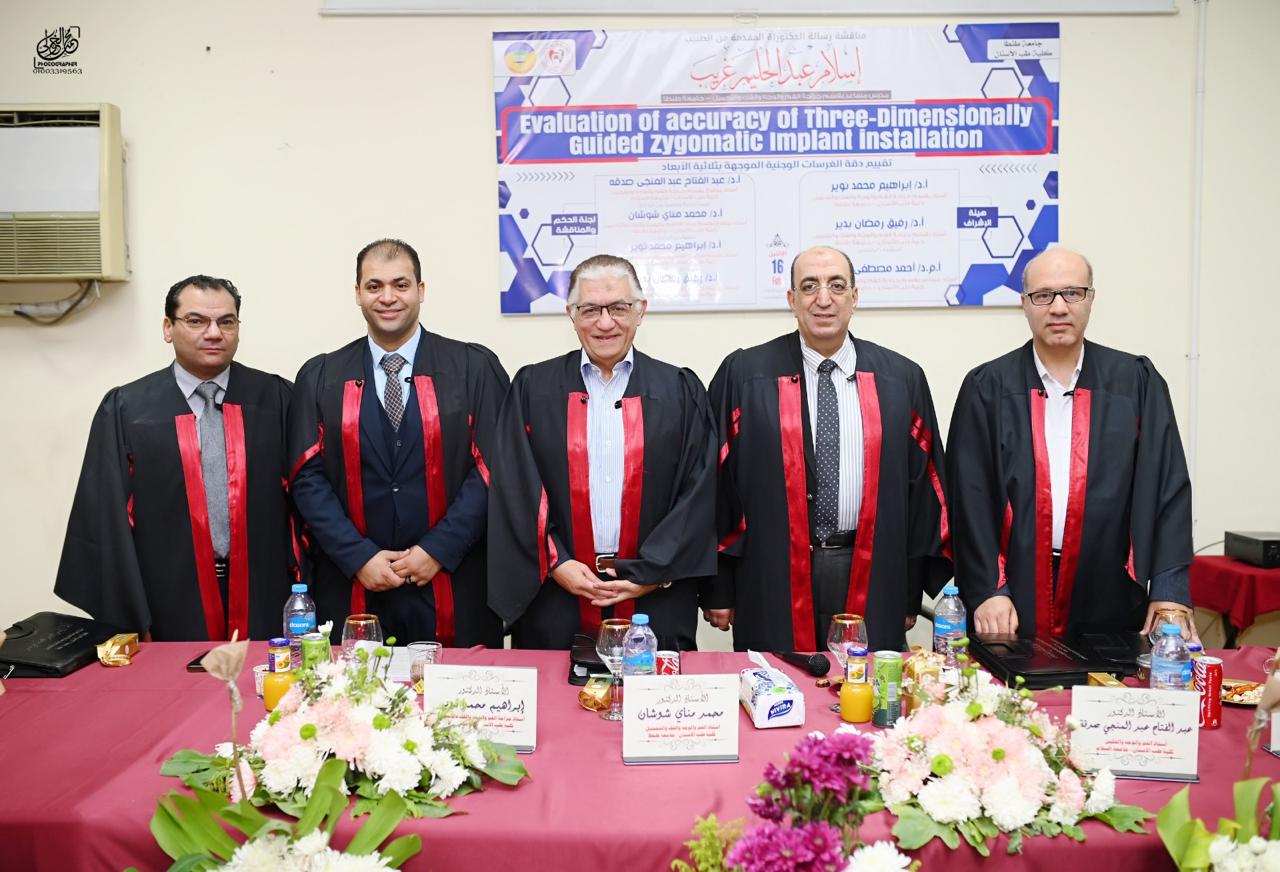 Soutenance publique de la thèse de doctorat du Dr/ Islam Abdel Halim Gharib, assistant au département de chirurgie orale et maxillo-faciale et de chirurgie plastique de la faculté de médecine dentaire de l'université de Tanta
