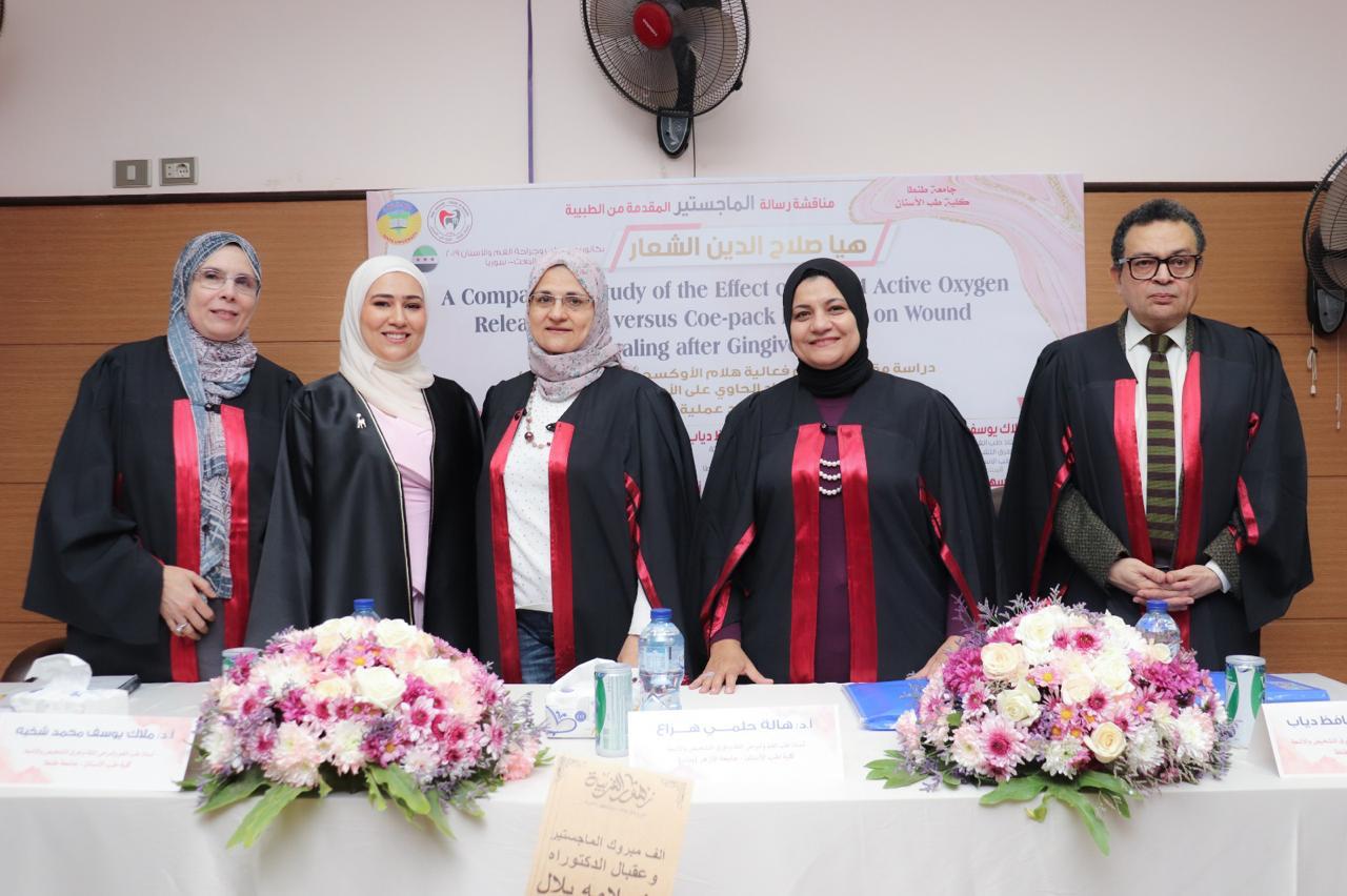 Faculty of Dentistry at Tanta University held the public discussion of the Master’s Thesis submitted by the researcher/ Haya Salah Addin Al-Sha’aar on Saturday, December 25th, 2025, in Building (2) room (1) on