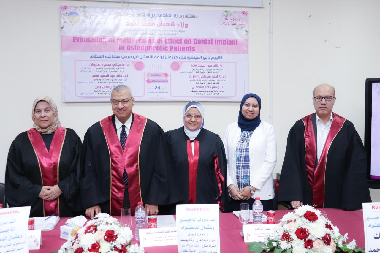 Faculty of Dentistry at Tanta University held the discussion of the Master’s Thesis presented by the researcher/ Walaa Sha’ban Mohammed Ahmed on Monday, November 24th, 2025, in the Discussion Hall.