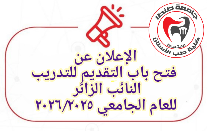 تعلن إدارة الدراسات العليا بكلية طب الأسنان جامعة طنطا عن فتح باب التقديم للتدريب النائب الزائر فى العام الجامعى ٢٠٢٦/٢٠٢٥ اعتبارا من