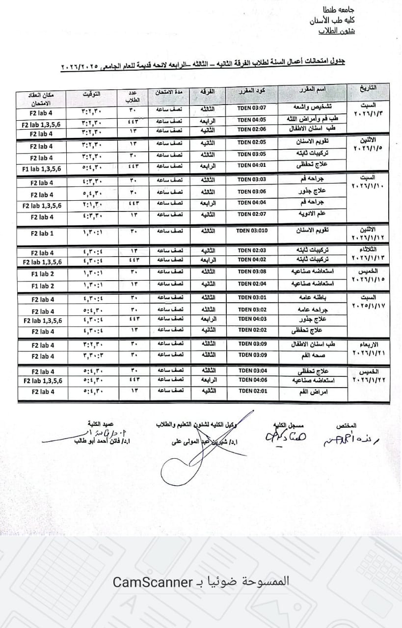تعليمات الامتحانات النهائية لطلاب طب الاسنان